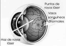 - Desprendimiento de la retina, una de las causas más comunes de ceguera en la diabetes, que tiene lugar cuando los vasos sanguíneos separan la retina de la parte posterior del ojo.
